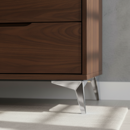 Její geometrický, jemně zalomený tvar vytváří moderní vizuální efekt a zároveň zajišťuje stabilní a pevnou oporu. Nožka LANIA je vhodná pro komody, skříňky, TV stolky, lavice či designový nábytek v moderním, minimalistickém i glamour stylu. Skvěle se kombinuje se světlými i tmavými povrchy, lakovaným nábytkem či sklem.