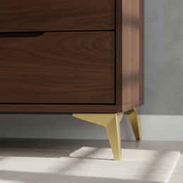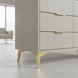 Její geometrický tvar vytváří vizuálně lehký dojem, ale zároveň poskytuje pevnou a stabilní oporu. Nožka LANIA je ideální pro komody, skříňky, TV stolky, lavice či designový nábytek v moderním, minimalistickém i glamour stylu.