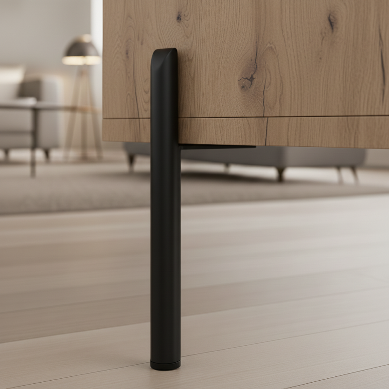 Designová nábytková noha s výškou 150 mm. Celková výška nohy je 212 mm. Šířka nohy 25 mm. Rozměr základny 88 x 59 mm. Noha nemá výškové nastavení.