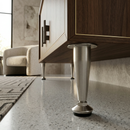 Elegantní nábytková nožička EUROPE v provedení chrom satén je praktickým a stylovým řešením pro různé typy nábytku. Díky modernímu kuželovému tvaru dodává nábytku lehký a elegantní vzhled a zároveň zajišťuje stabilní oporu.