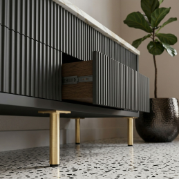 Nožička LEONOR v provedení zlatá broušená dodá nábytku moderní a luxusní vzhled a zároveň zajistí jeho stabilní oporu bez poškození podlahy.