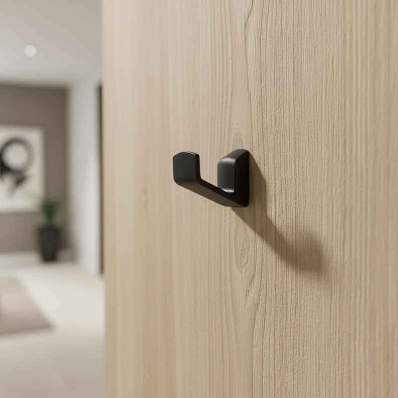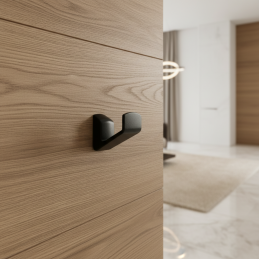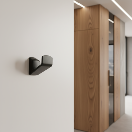 Minimalistický a elegantní věšák TREVOR v povrchové úpravě černá matná je ideální doplněk pro moderní nábytek, předsíně, koupelny, šatny či kanceláře.