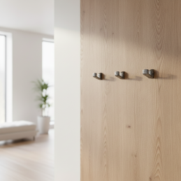 Montáž probíhá ze zadní strany panelu nebo nábytku pomocí přiloženého šroubu, díky čemuž zůstává čelní plocha zcela čistá – bez viditelných šroubů a rušivých prvků.