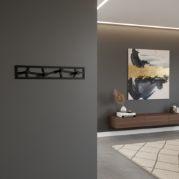 Stylový designový věšák KASTO XL v elegantním černém matném provedení je praktickým a zároveň výrazným doplňkem do moderních interiérů. Díky originálnímu geometrickému designu nepůsobí jen funkčně, ale i dekorativně a stává se zajímavým prvkem na stěně.