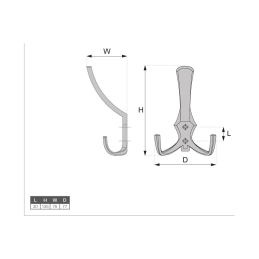 Nábytkový kovový nástěnný věšák s přední montáží. Lze kombinovat s dalšími velikostmi věšáků ve stejném designu.