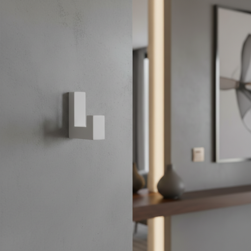 Elegantní a praktický věšák v moderním designu s přední montáží na podložku. Instalace je jednoduchá - podložka se připevní ke stěně pomocí hmoždinek a šroubů (jsou součástí dodávky), na ni se pak nasadí věšák a zespodu se upevní šroubem.