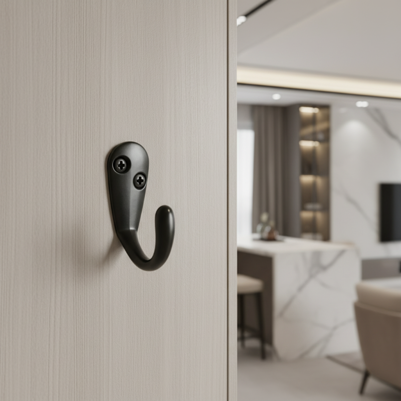 Věšák se montuje zepředu pomocí šroubů, což zaručuje pevnou a stabilní instalaci. Díky jeho tvaru je vhodný k zavěšení oblečení, ručníků či tašek. Lze jej kombinovat i s dalšími velikostmi věšáků z kolekce LARRA – S, L a XL, čímž vytvoříte designově jednotný prostor.