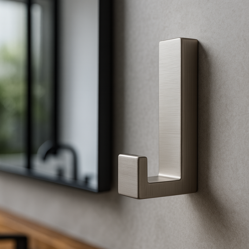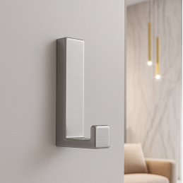 Montáž probíhá jednoduše a čistě – nejprve se připevní montážní podložka na stěnu nebo nábytek a následně se na ni nasadí samotný věšák, který se zespodu zafixuje šroubem. Díky tomuto řešení zůstávají všechny šrouby skryté a výsledný vzhled je dokonale čistý.