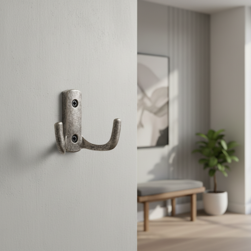 Kompaktní rozměr s dvojitým háčkem poskytuje praktický prostor pro zavěšení oblečení, ručníků, tašek nebo menších doplňků – ideální i do užších prostor.