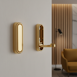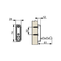 Jednoduchý věšák s montáží zepředu s výškou 74 mm a šířkou 24 mm. Šrouby pro uchycení jsou součástí věšáku. Věšák se jednoduše vyklápí stisknutím. Věšák se montuje na povrch a není nutné jej frézovat do nábytku či materiálu.