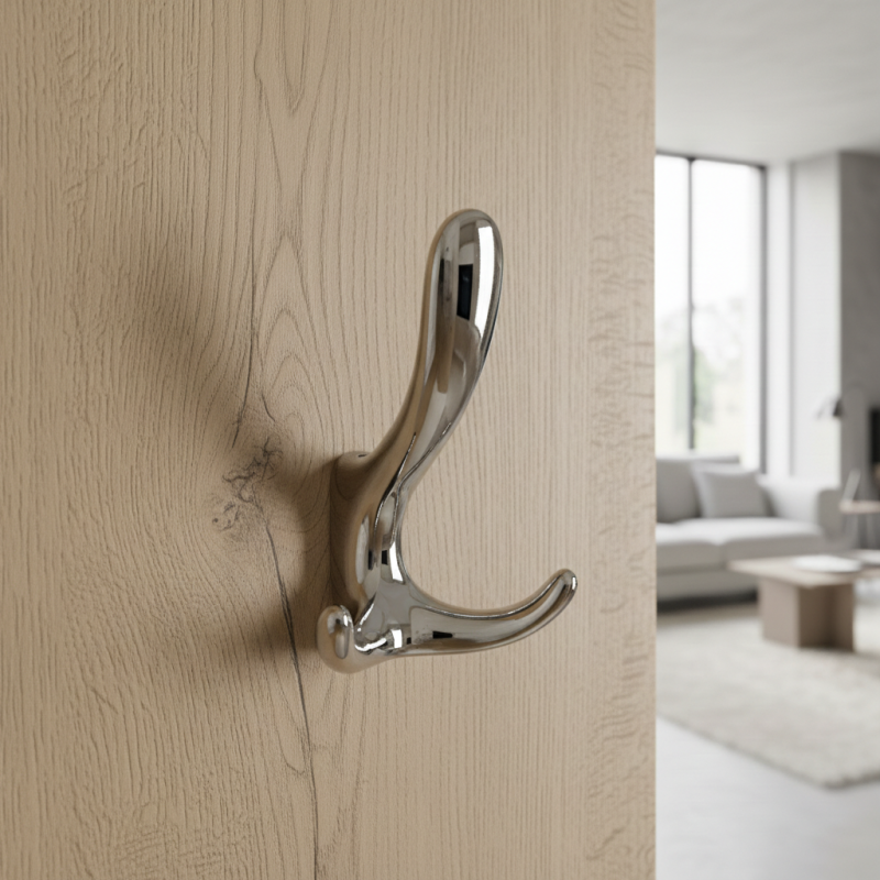 Moderní a výrazný věšák MARKO v povrchové úpravě lesklý chrom je ideálním doplňkem do předsíně, koupelny, kuchyně, šatníku či kanceláře.Jeho tvar umožňuje pohodlné zavěšení oděvů, ručníků, kabelek i doplňků, přičemž působí elegantně a esteticky čistě.