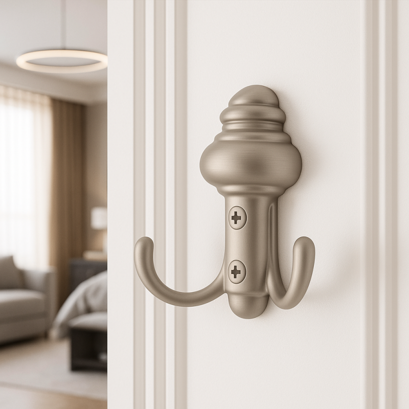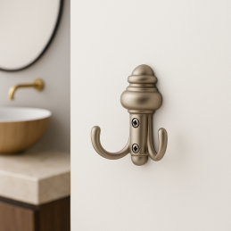 Elegantní dvojháček v saténovém provedení, který spojuje klasický design s moderním vzhledem. Je ideální do předsíně, koupelny, ložnice nebo šatníku. Díky svému oblému tvaru působí jemně a zároveň poskytuje dostatek prostoru pro zavěšení více kusů oblečení či doplňků.