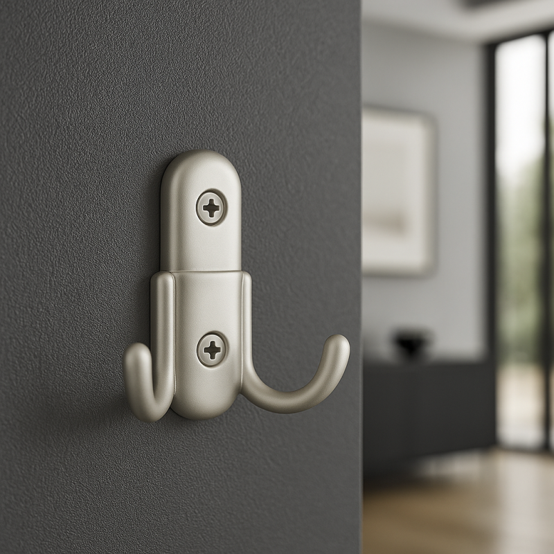 Montáž je zepředu pomocí šroubů, což umožňuje jednoduché a pevné uchycení. Díky kvalitnímu kovovému zpracování je háček odolný a vhodný pro každodenní používání.