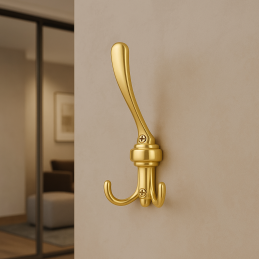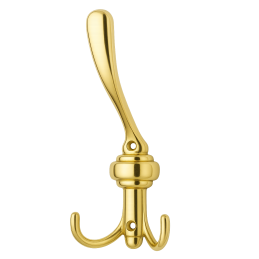Elegantní tříramenný věšák ve zlatém lesklém provedení, který spojuje klasický tvar s luxusním vzhledem. Díky svému lesklému povrchu a propracovanému designu působí reprezentativně a dodá interiéru nádech elegance. Ideální do předsíně, koupelny, ložnice nebo kanceláře.