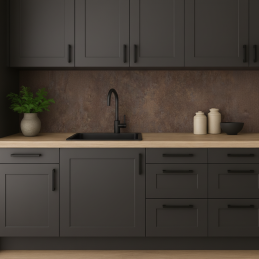 Dodejte své kuchyni praktickou ochranu a elegantní vzhled s naší kuchyňskou zástěnou vyrobenou z kvalitní dřevotřísky potažené odolným laminátem. Tento materiál se vyznačuje vysokou odolností vůči poškození, mechanické zátěži a zvýšeným teplotám, což zaručuje dlouhou životnost i při každodenním používání.