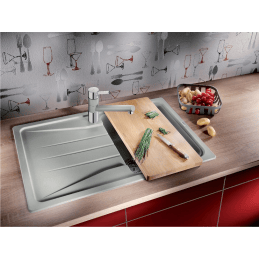 Prkénko na krájení Blanco je praktickým doplňkem, který rozšiřuje funkčnost dřezu a vytváří pohodlné pracovní místo pro přípravu jídla.