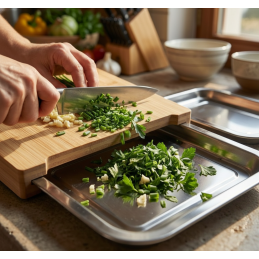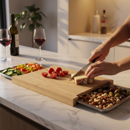 Bambusová krájecí deska s nádobami je ideální kombinací praktičnosti, estetiky a hygieny, která zpříjemní každodenní práci v kuchyni.