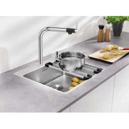 Toto příslušenství umožňuje proměnit váš dřez na multifunkční pracovní centrum. Zvyšuje komfort, organizaci a flexibilitu při přípravě jídel, přičemž zachovává čistý a profesionální vzhled kuchyně.