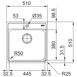 Rozměry dřezu: 510 × 510 mm
