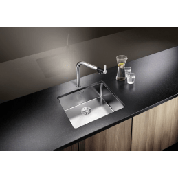 Blanco Andano přináší jedinečnou kompozici optických a funkčních prvků – spojuje esteticky čisté linie, harmonická zaoblení a prémiové materiálové zpracování, díky čemuž působí dřez nejen moderně, ale také mimořádně prakticky při každodenním používání.