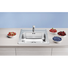 Blanco Dana 6 je elegantní jednodřezový nerezový dřez určený pro montáž na pracovní desku. Díky čistému designu bez odkapávací plochy působí moderně a nadčasově, přičemž poskytuje dostatek prostoru pro každodenní používání. Dřez má rozměry 605 × 500 mm a je vhodný pro skříňky s minimální šířkou 60 cm.
