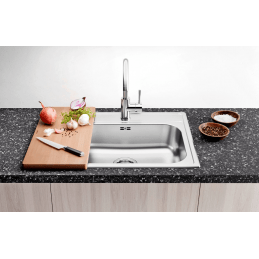 Blanco Dana 45 je moderní jednodřezový nerezový dřez, určený pro montáž na pracovní desku. Díky svým kompaktním rozměrům 480 × 500 mm je ideální pro menší kuchyně nebo kuchyňské sestavy se skříňkou od 45 cm, aniž byste museli dělat kompromisy v kvalitě či estetice.