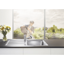 Vhodný pro skříňky od 60 cm – praktické řešení při zachování vysoké kapacity dřezu.