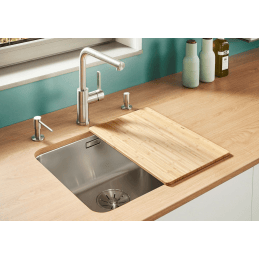 Díky instalaci pod pracovní desku vytváří jednolitý povrch bez rušivých okrajů, což: