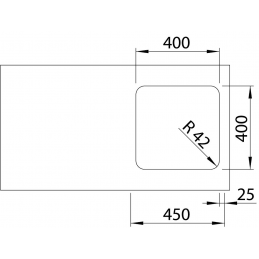 Vanička s rozměry 400 × 400 mm a hloubkou 185 mm (rádius R42) poskytuje komfortní pracovní prostor i při manipulaci s větším nádobím.