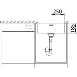 Velkorysá vanička s rozměry 500 × 400 mm a hloubkou 185 mm (rádius R42) poskytuje dostatek prostoru pro pohodlné mytí i většího nádobí.