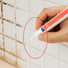 3. Jemně naneste na spárovací hmotu a ihned setřete barvu, která se dostala na dlaždice.