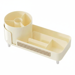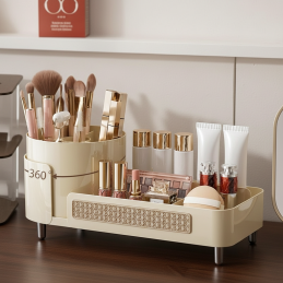 Elegantní a praktický otočný organizér MAKEUP v jemném krémovém provedení je ideálním řešením pro přehledné uložení kosmetiky, štětců a každodenních beauty doplňků. Světlá neutrální barva působí čistě a harmonicky, díky čemuž se organizér snadno přizpůsobí jakémukoli interiéru.