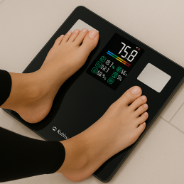 Analytická váha FITT je moderní nástroj pro ty, kteří chtějí mít svůj zdravotní stav plně pod kontrolou. Nejde jen o obyčejnou váhu – díky technologii BIA (bioelektrická impedanční analýza) přesně analyzuje hmotnost, BMI, procento tělesného tuku, obsah vody, svalovou a kostní hmotu, viscerální tuk i metabolický věk.
