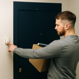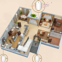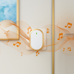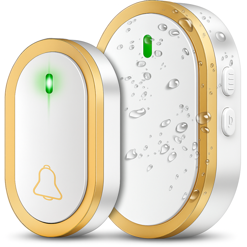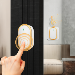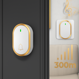 Díky vodotěsnému tlačítku s certifikací IP44 je vhodný pro venkovní montáž a jeho dosah až 300 metrů na volném prostranství umožňuje použití i jako zvonek ke bráně nebo garáži.