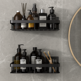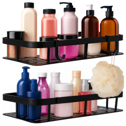 1. Maximální úložný prostor: S touto sadou získáte dvě police, což znamená, že můžete uložit více kosmetických produktů, šamponů, kondicionérů nebo sprchových gelů. Navíc vám další háčky umožní pohodlně zavěsit žínky, houbičky nebo jiné příslušenství.