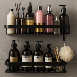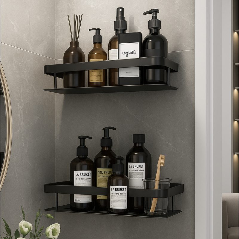 Vytvořte si z koupelny organizovaný a elegantní prostor s naší sadou 2 ks závěsných koupelnových poliček LIAN / Black Matte. Objednejte si ji ještě dnes a zažijte koupelnu plnou pořádku a stylu!