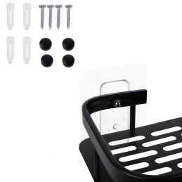 2. Naše police jsou vybaveny lepicími podložkami, které umožňují rychlou a snadnou instalaci bez nutnosti vrtání. Pokud však dáváte přednost tradiční instalaci, jsou součástí dodávky také distanční hmoždinky pro pevné upevnění ke stěně.