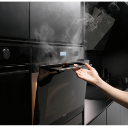 Elegantní černé sklo a nerezový interiér dodávají spotřebiči nadčasový vzhled, který dokonale zapadne do moderní kuchyně.