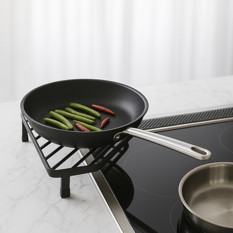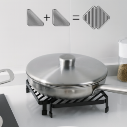 Stylová a praktická rohová odkládací polička je ideálním doplňkem ke kuchyňské lince – zejména v prostoru u sporáku. Umožňuje bezpečné a pohodlné odkládání horkých pánví, hrnců či kuchyňského nádobí bez rizika poškození pracovní desky.