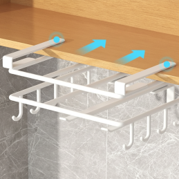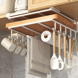 Praktický kovový držák DRAFT v elegantním bílém matném provedení je ideálním řešením pro organizaci kuchyňského prostoru. Jednoduše se zasune pod polici nebo spodní skříňku, čímž okamžitě vytvoří nové úložné místo – bez vrtání a montáže.
