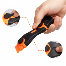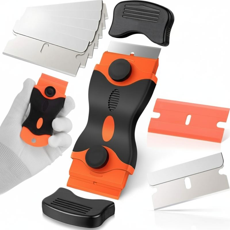Škrabka je vhodná také na čištění oken, zrcadel, sprchových koutů, krbových skel, dlaždic nebo odstranění nálepek a zbytků lepidla.