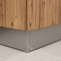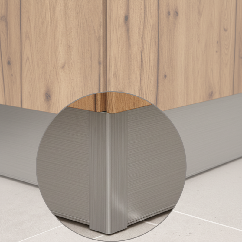 Rohová spojka v dekoru broušená nerez je určena pro spojování soklů pod úhlem 90° – ideální pro čisté, pevné a estetické propojení kuchyňských soklů v rozích linky.Je vyrobena z kvalitního plastového materiálu, který je na horní straně potažený hliníkovou fólií. Tato úprava zaručuje, že spojka přesně ladí se soklem v dekoru nerez, a zároveň chrání spoj před vlhkostí a opotřebením.Je vhodná pro plastové i dřevěné sokly.