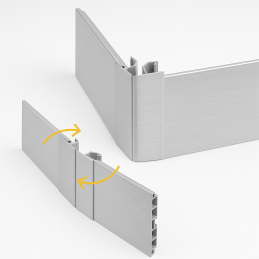 Flexibilní spojka na kuchyňský sokl PAX v dekoru nerez broušený je praktickým řešením pro spojování soklů pod různými úhly v rozmezí 90° až 270°.