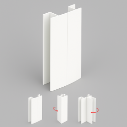 Flexibilní spojka na kuchyňský sokl PAX v odstínu bílá matná RAL 9010 je praktickým řešením pro spojování soklů pod různými úhly v rozsahu 90° až 270°.