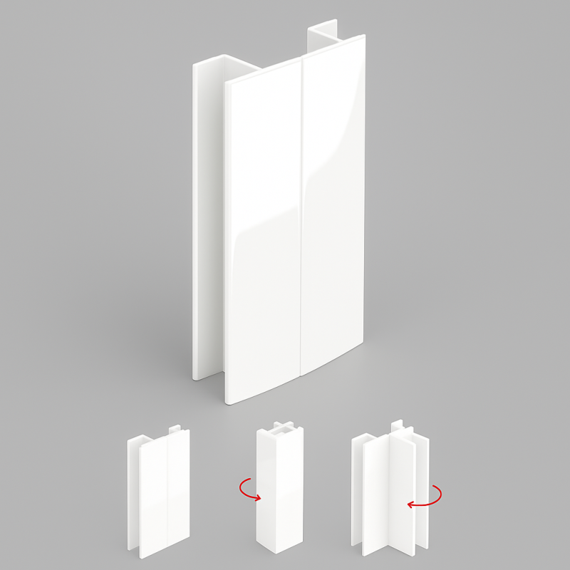 Flexibilní spojka na kuchyňský sokl PAX v odstínu bílá lesklá RAL 9016 je ideálním řešením pro spojování soklů pod různými úhly v rozsahu 90° až 270°.