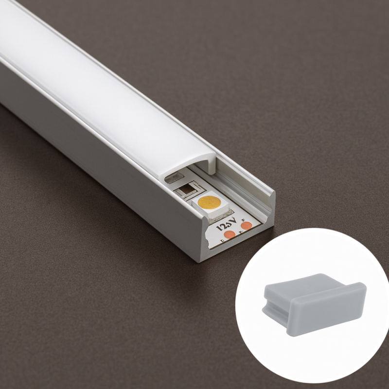 Slouží k estetickému a přesnému zakončení LED profilu, čímž zajišťuje profesionální vzhled osvětlení a chrání vnitřní části profilu před prachem a mechanickým poškozením.