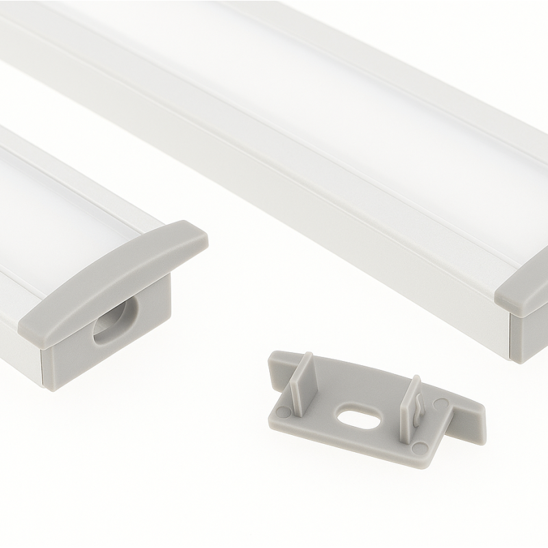 Slouží k estetickému a funkčnímu zakončení LED profilu – chrání hrany, zabraňuje vnikání prachu a zároveň umožňuje snadné vyvedení napájecího kabelu.