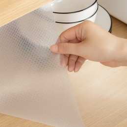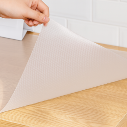 Podložku je možné snadno zkrátit na požadovaný rozměr – stačí ji nastříhat nůžkami podle velikosti zásuvky nebo poličky. Díky transparentnímu provedení se dokonale hodí do každého interiéru bez narušení designu.