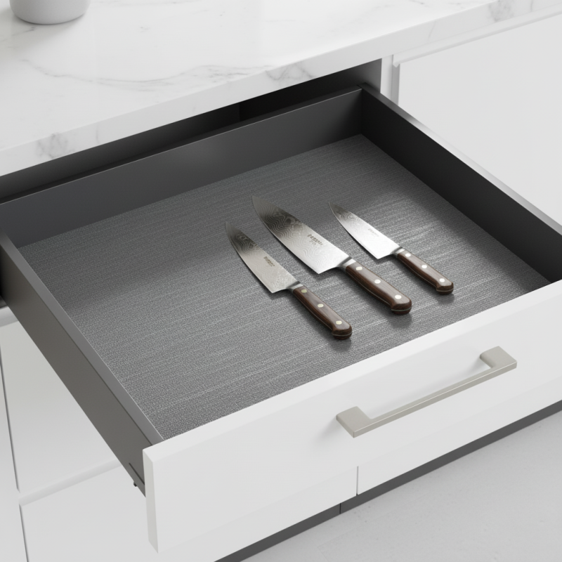 Vysoce kvalitní a odolná protiskluzová podložka v moderním šedém provedení je navržena tak, aby udržela obsah zásuvek na svém místě a zároveň chránila jejich dno před poškrábáním či znečištěním. Díky univerzálnímu designu a přesnému formátování perfektně pasuje do zásuvek s dutými, úzkými bočnicemi systému LEGRABOX, ale v případě potřeby ji lze jednoduše upravit i pro jiné typy zásuvek.