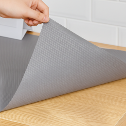 Podložku lze jednoduše přizpůsobit požadovanému rozměru – stačí ji nastříhat nůžkami podle velikosti zásuvky nebo poličky. Šedé barevné provedení působí neutrálně a elegantně a snadno zapadne do každého interiéru.